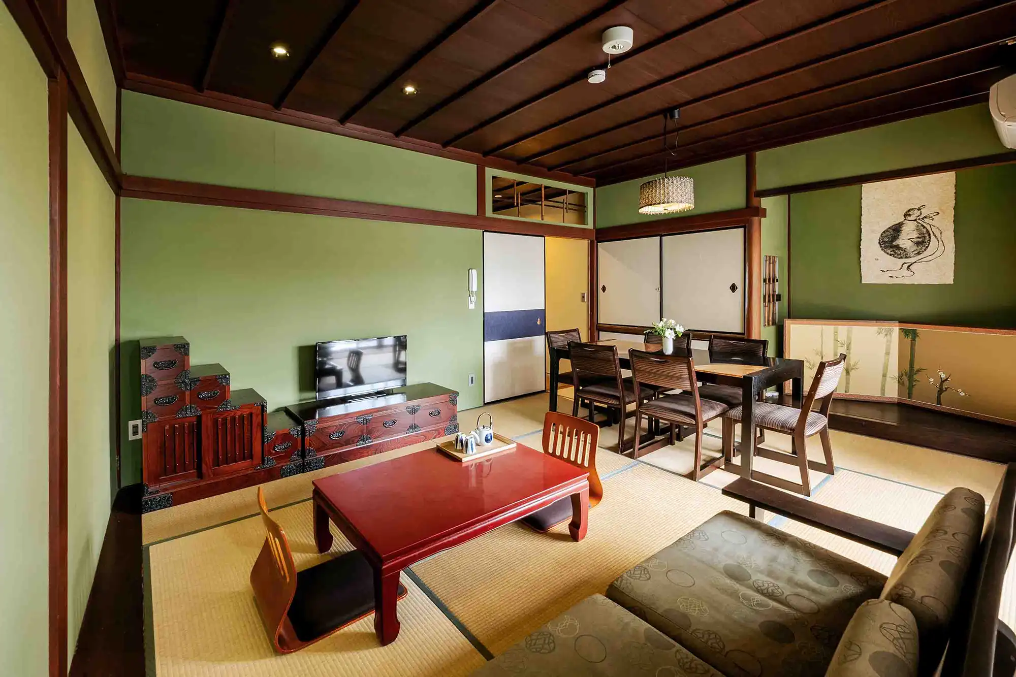 A spacious, traditional Japanese house located near the historical Higashi Chaya Tea District. Inspired by the colorful hues of ‘Kaga Gosai’ & matsu pine tree.