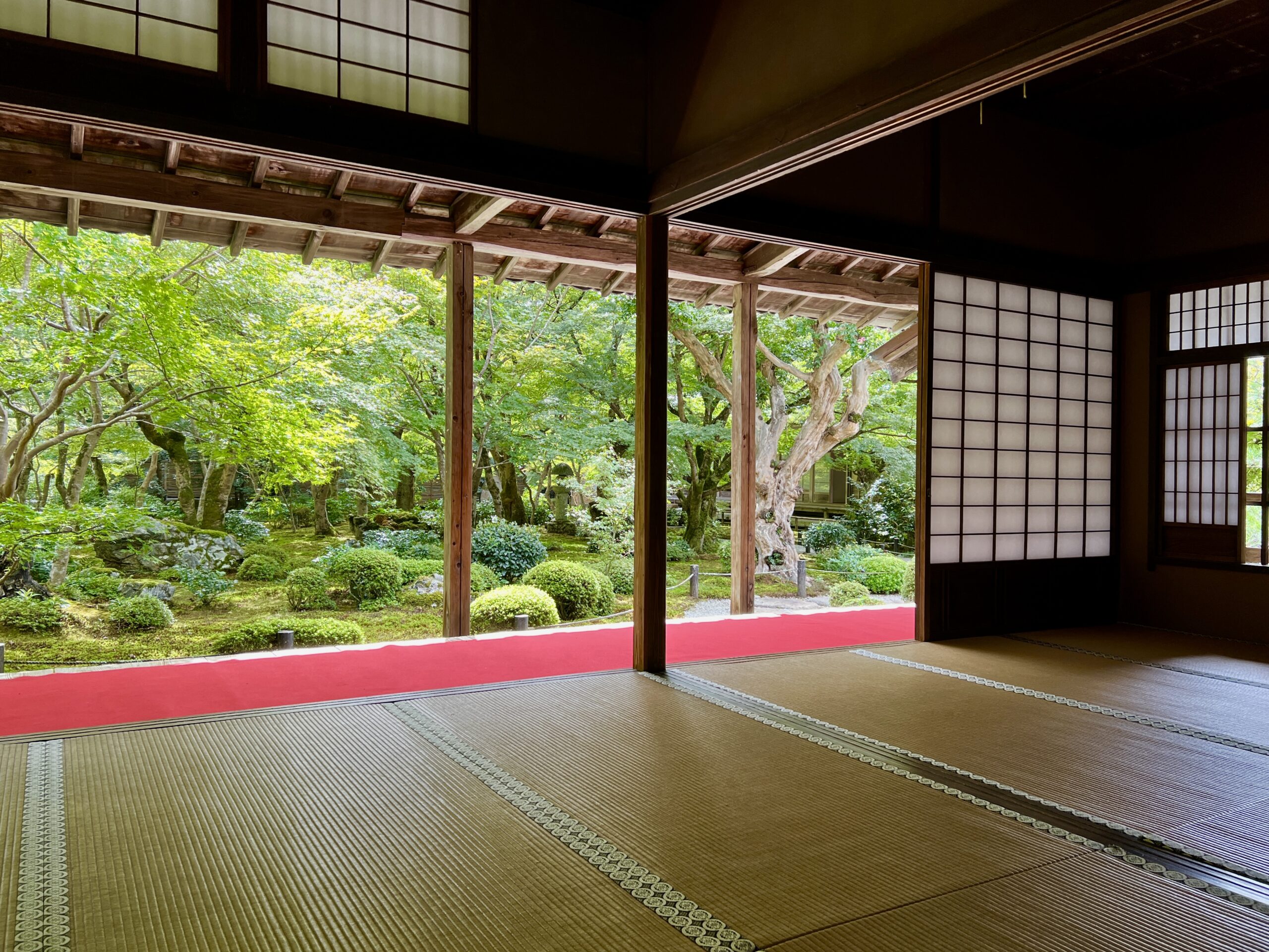 Enkoji Temple was originally established as an educational institution for samurai by Shogun Ieyasu Tokugawa in 1601, where both samurai and monks learned Confucianism. Now, it’s most famous for being a “framed garden” (額縁庭園 – gakuen teien) where the wooden pillars of the temple structure create a natural picture frame for the surrounding landscape.