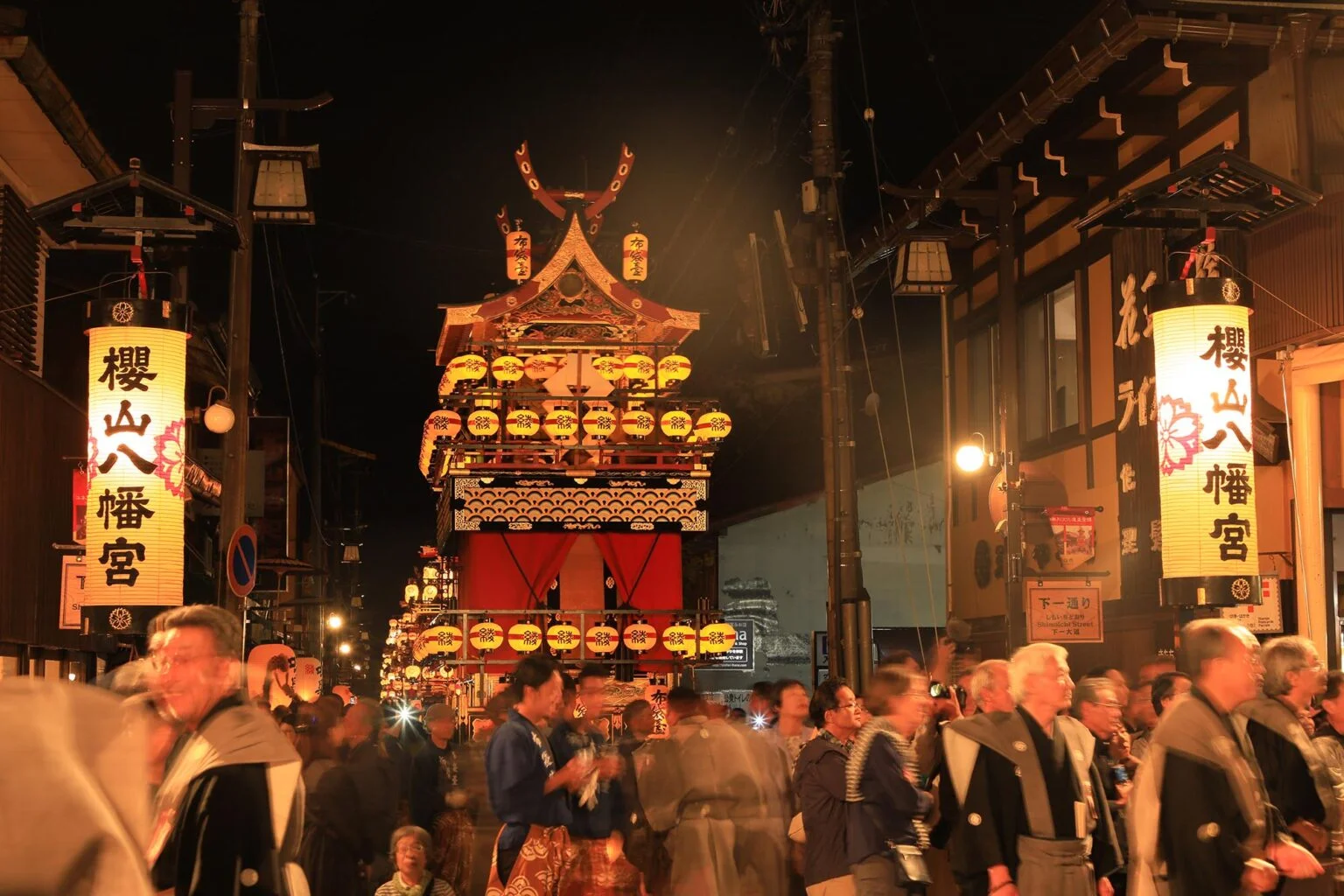 If you’ve planned your visit to Japan to coincide with the Autumn Festival, don’t miss the enchanting Evening Festival (Yoi Matsuri) on the final night! Watch as lantern-lit floats create a magical atmosphere while making their way around town, accompanied by the traditional Hiki-Baretsuki song “Takaku Yama” (High Mountain).