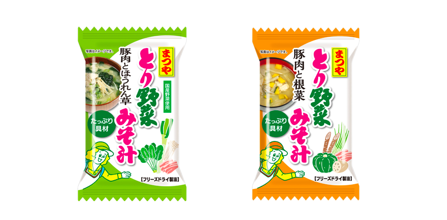「とり野菜みそ汁」は、「豚肉と根菜」と「豚肉とほうれん草」の2種類があります。
