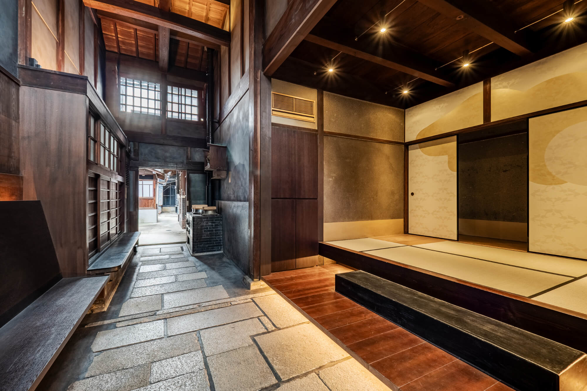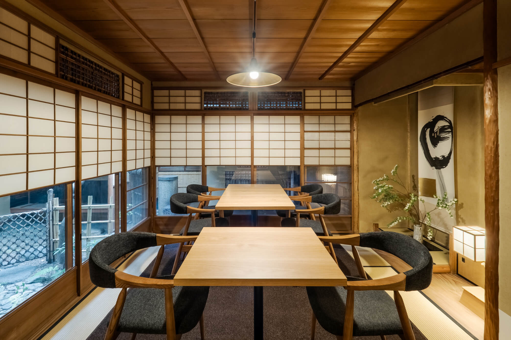 THE MACHIYA LOUNGE is housed within a late 19th-century machiya architecture, an example of traditional Kyoto craftsmanship built by a master carpenter of his time.