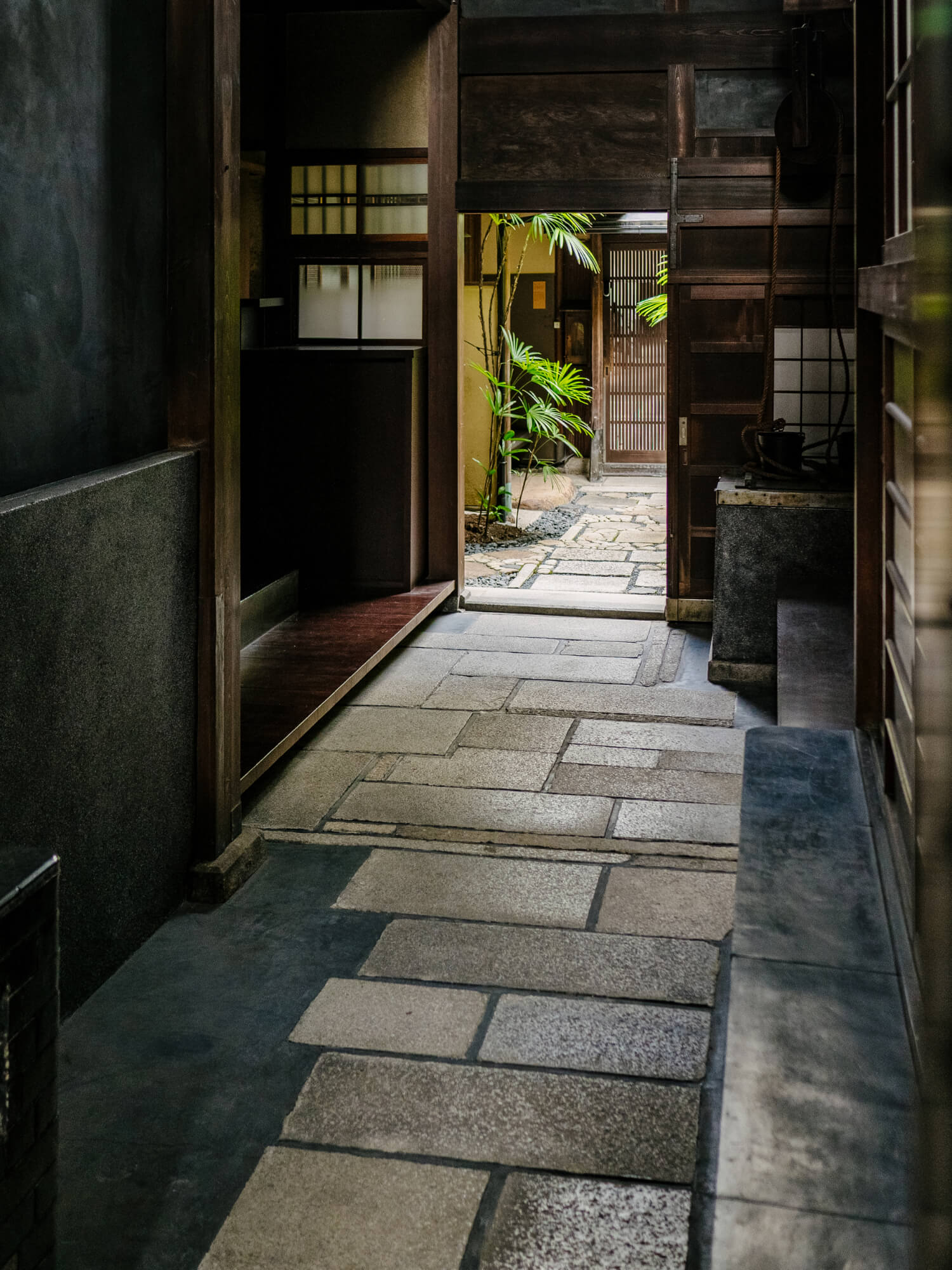 This machiya building was originally the home of the Nakamura family, who had found success as merchants, and was constructed during the late Edo to early Meiji period. Built in the Ōhori-zukuri style, the characteristic small eaves, latticed windows, surrounding walls, and gardens throughout the property all reflect the care and style of the people who once lived here. The building has since been recognized by the City of Kyoto as a Structure of Landscape Importance.
