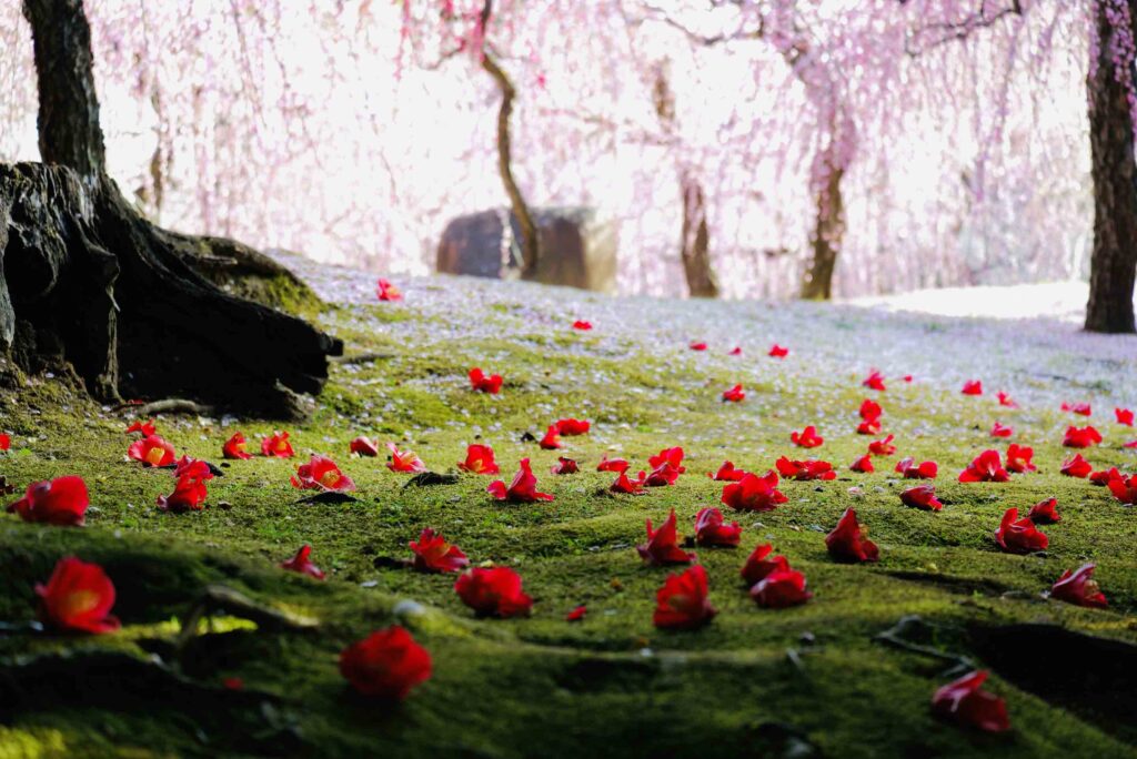 平安京の守護社のひとつとして創建された古社。例年2月中旬から3月下旬にかけて「しだれ梅と椿まつり」が開催されます。庭園を埋め尽くすしだれ梅は、薄紅色の花が降りそそぐように咲き誇り、足元を彩る椿との対比も印象的です。凛とした北野天満宮の梅とはまた異なる、華やかで優美な春景色をご覧いただけます。写真スポットとしても毎年注目を集める場所ですので、早めの時間に訪れるのがおすすめです。