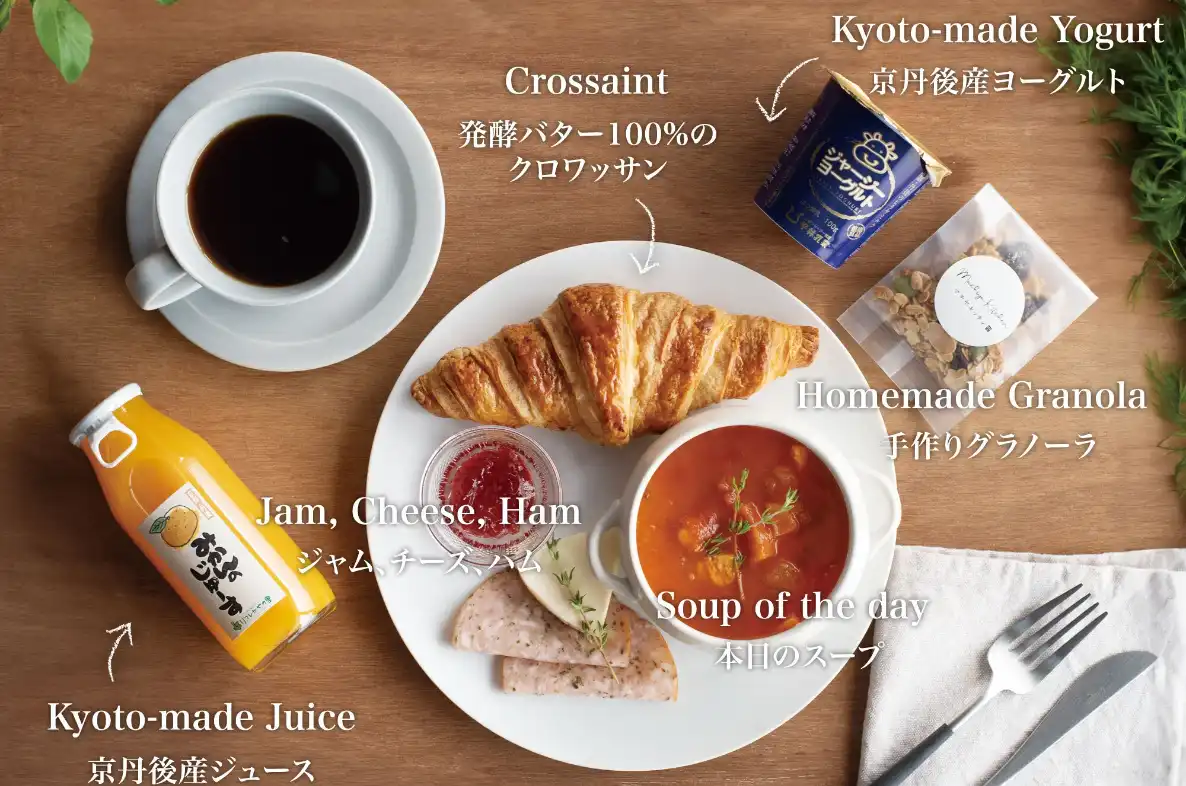 Kyoto City Delivered directly to your machiya house, our Western-style MACHIYA Breakfast BENTO Box features locally made items, wrapped in a traditional furoshiki cloth.