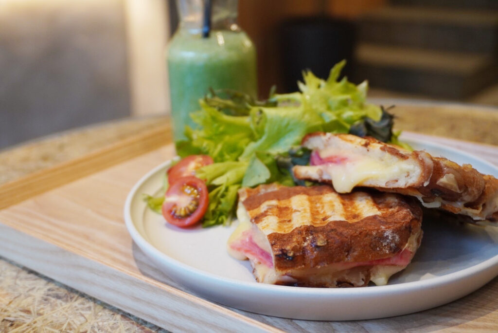 「季節のパニーニ」は、香ばしいパンに飛騨の野菜を使用した具材がぎゅっと詰まっていて、食べ応え抜群です。朝食としてもお召し上がりいただけます。飛騨ほうれん草を使用した「スムージー」も、ご一緒にいかがでしょうか。バナナとの組み合わせで濃厚な味わいをたっぷり楽しめます。