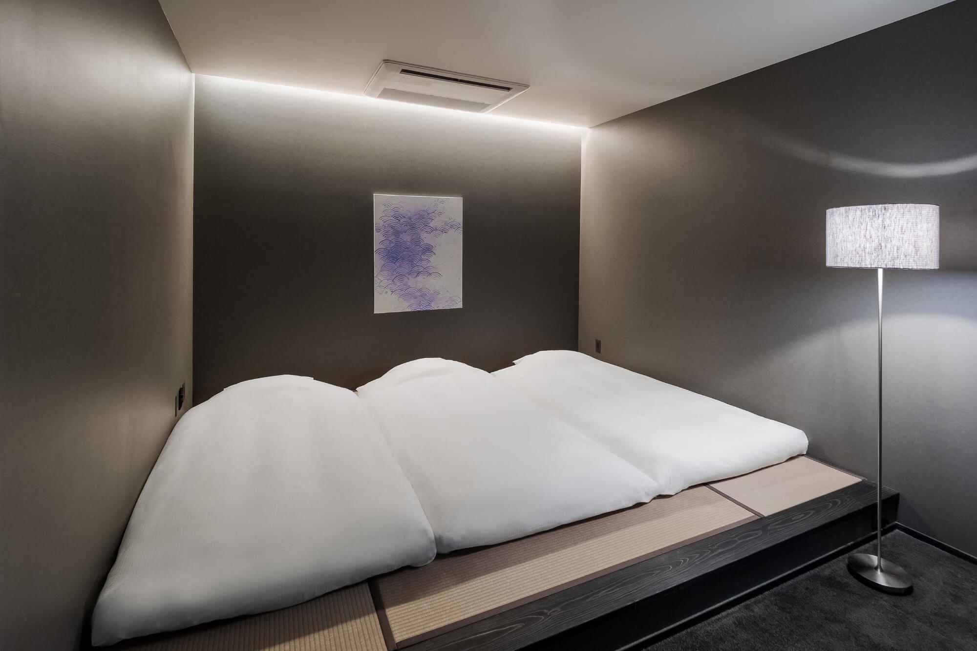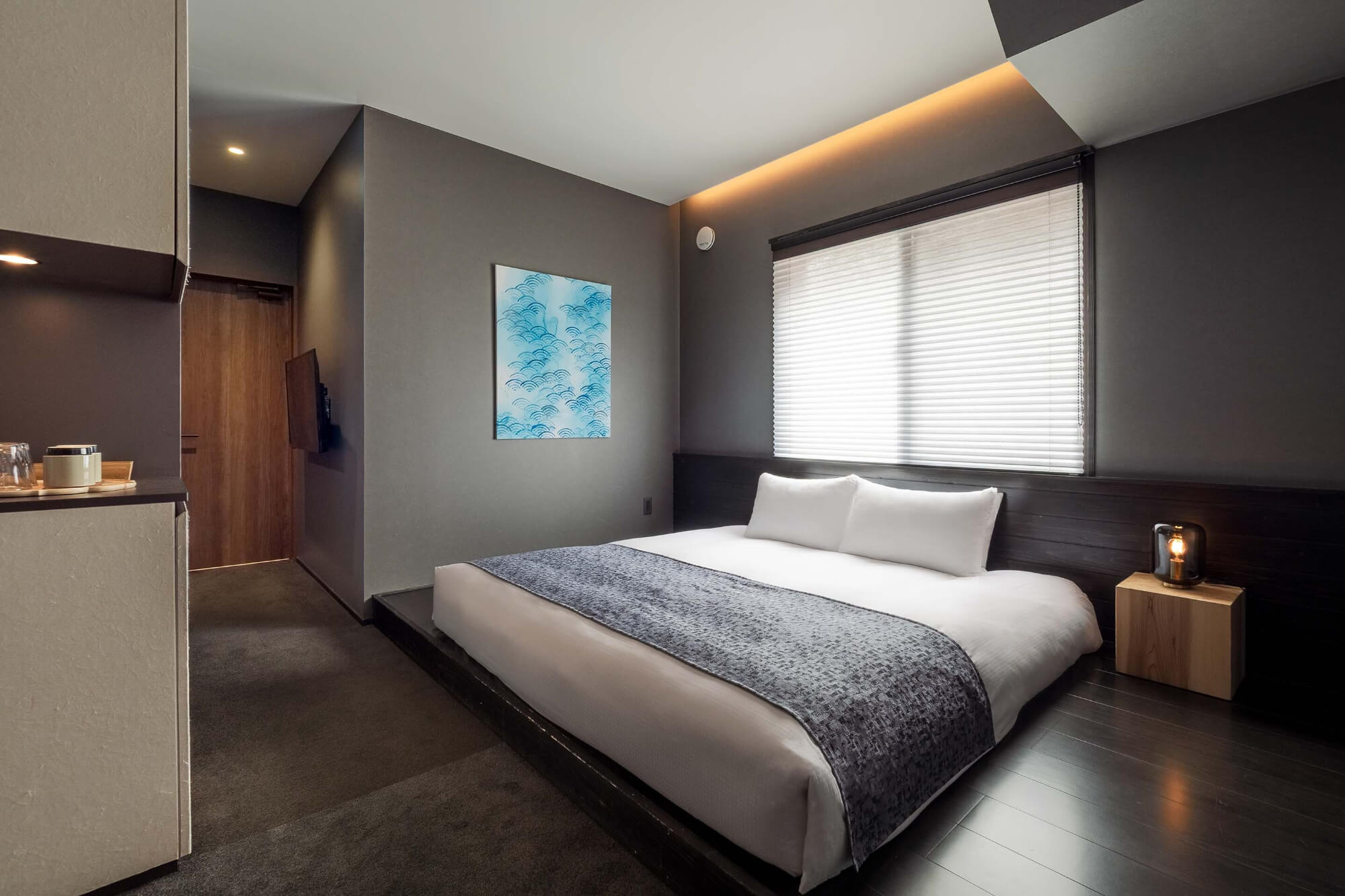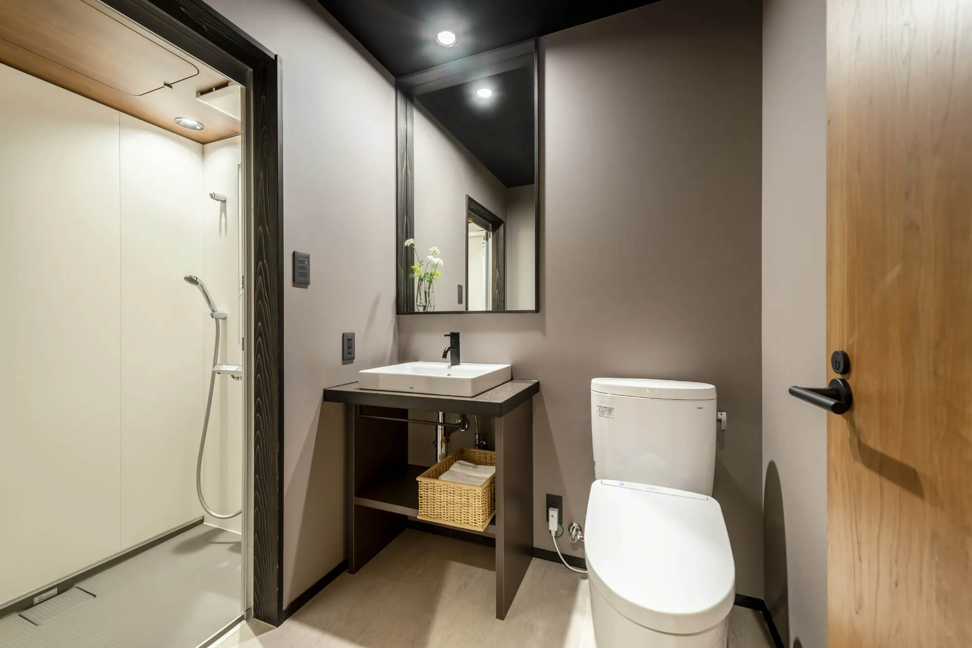 隣り合う洋室・和室の前扉がある共通玄関を通って、それぞれのお部屋を行き来しながらご滞在いただけます。ご家族やご友人グループごとにお部屋を分けて、お互いのプライバシーに配慮しながらも、団欒や旅路の相談などのコミュニケーションをスムーズに。ゆったりとしたキングベッド1台とソファーの洋室と、お布団2組をご用意できる和室で、5名様までご利用いただけます。