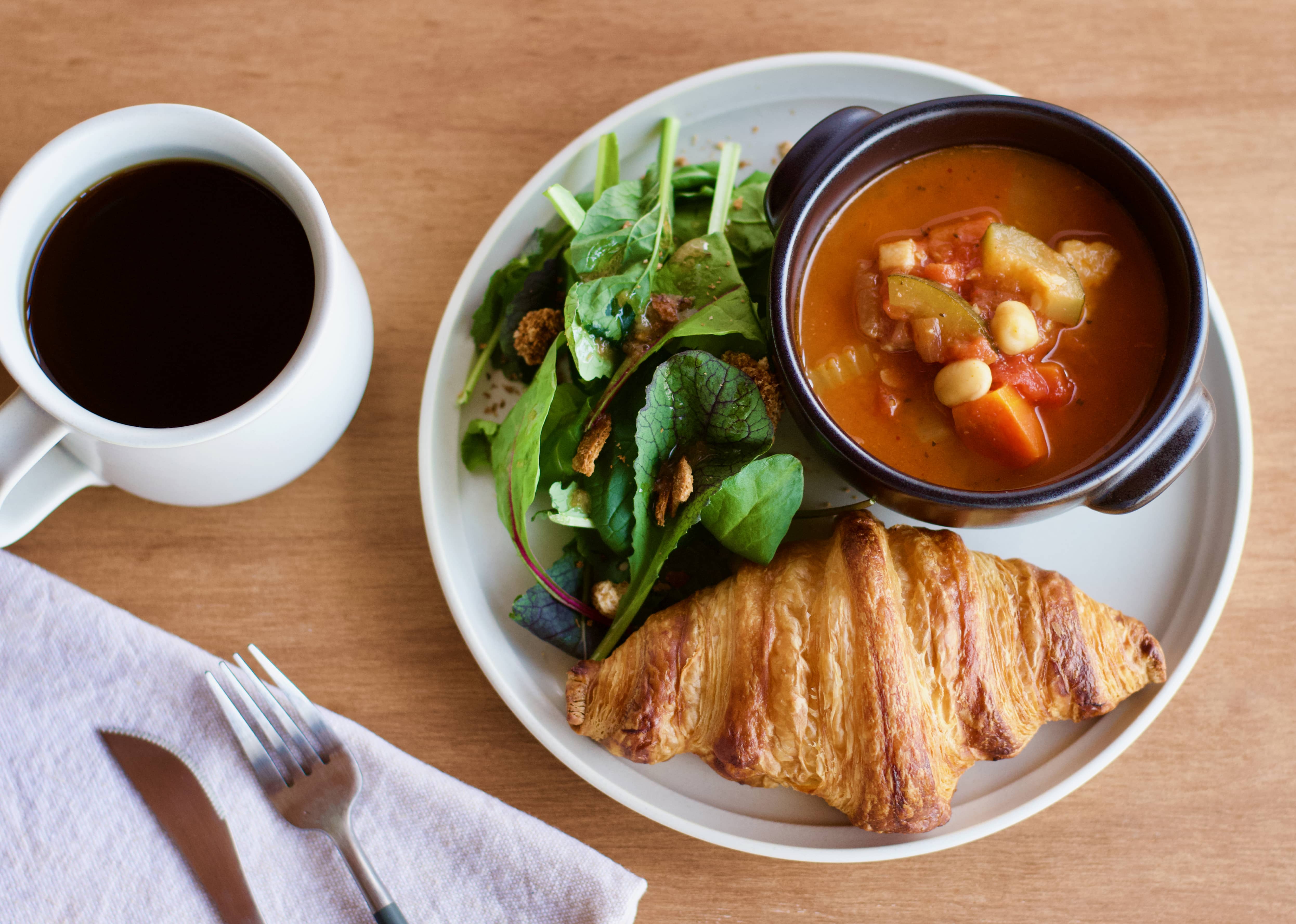 野菜がたっぷり入った温かな自家製スープをご堪能ください。