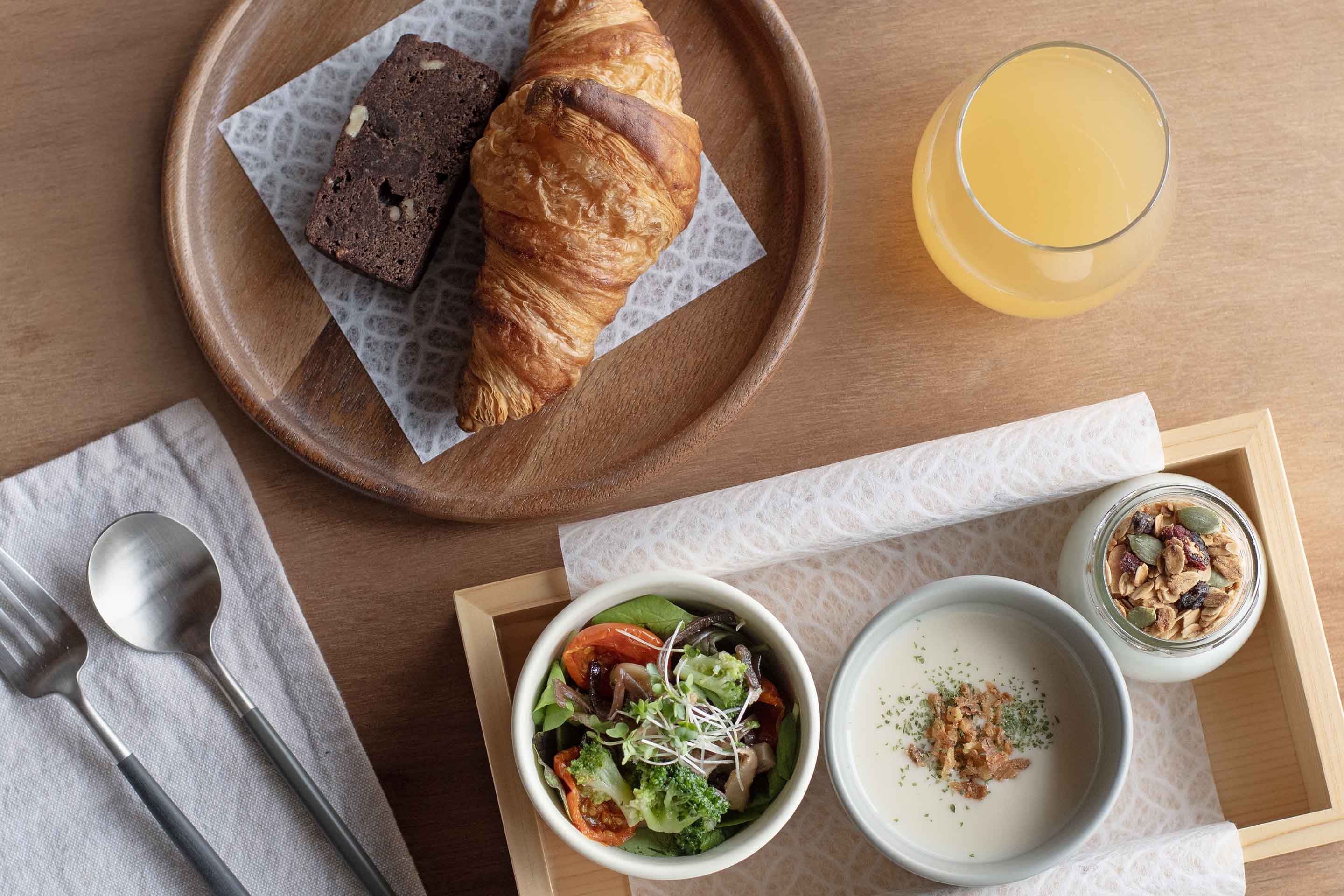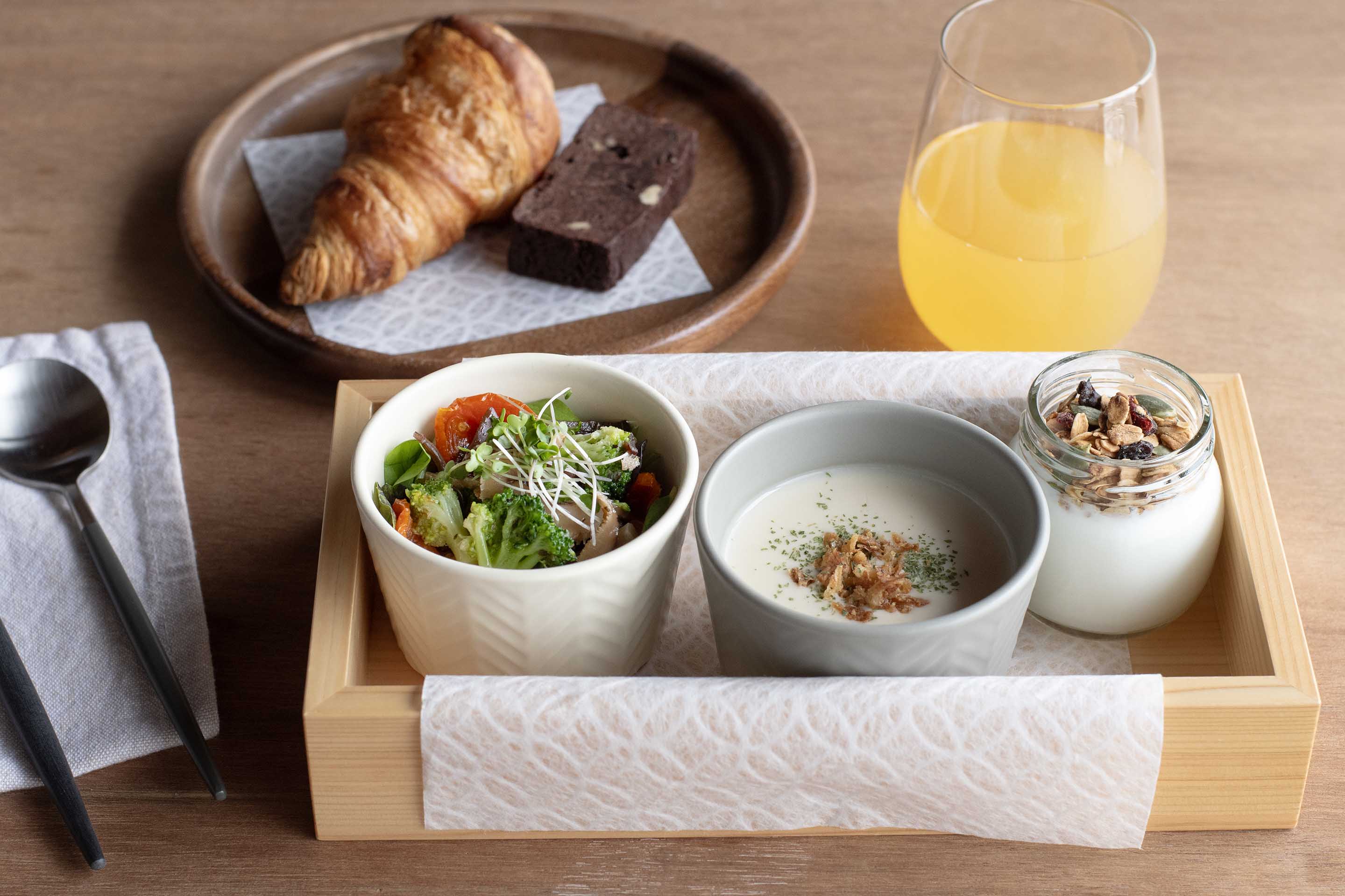 「ご滞在の町家にお届け」または「近隣カフェでのお食事」からお選びいただける朝食です。