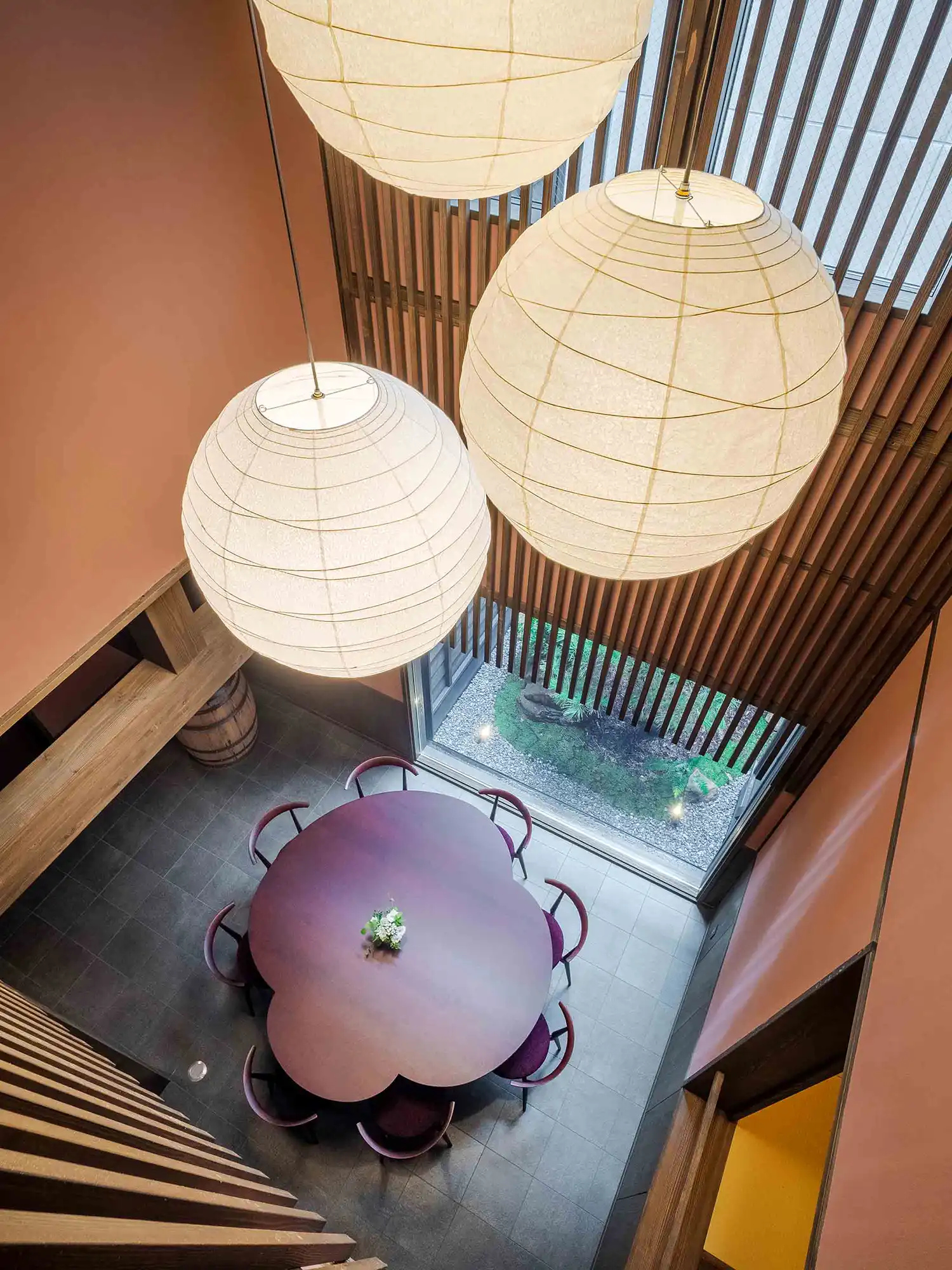 当町家にしつらえたテーブルやチェアにも、飛騨高山で家具づくりを続ける老舗の技が息づいています。地元産の良質なナラ材から作られた大きなダイニングテーブルは、町家のためにデザインされた特別な逸品。年月を重ねるごとに美しさが際立つ、飛騨高山の家具に込められた職人技をご堪能ください。